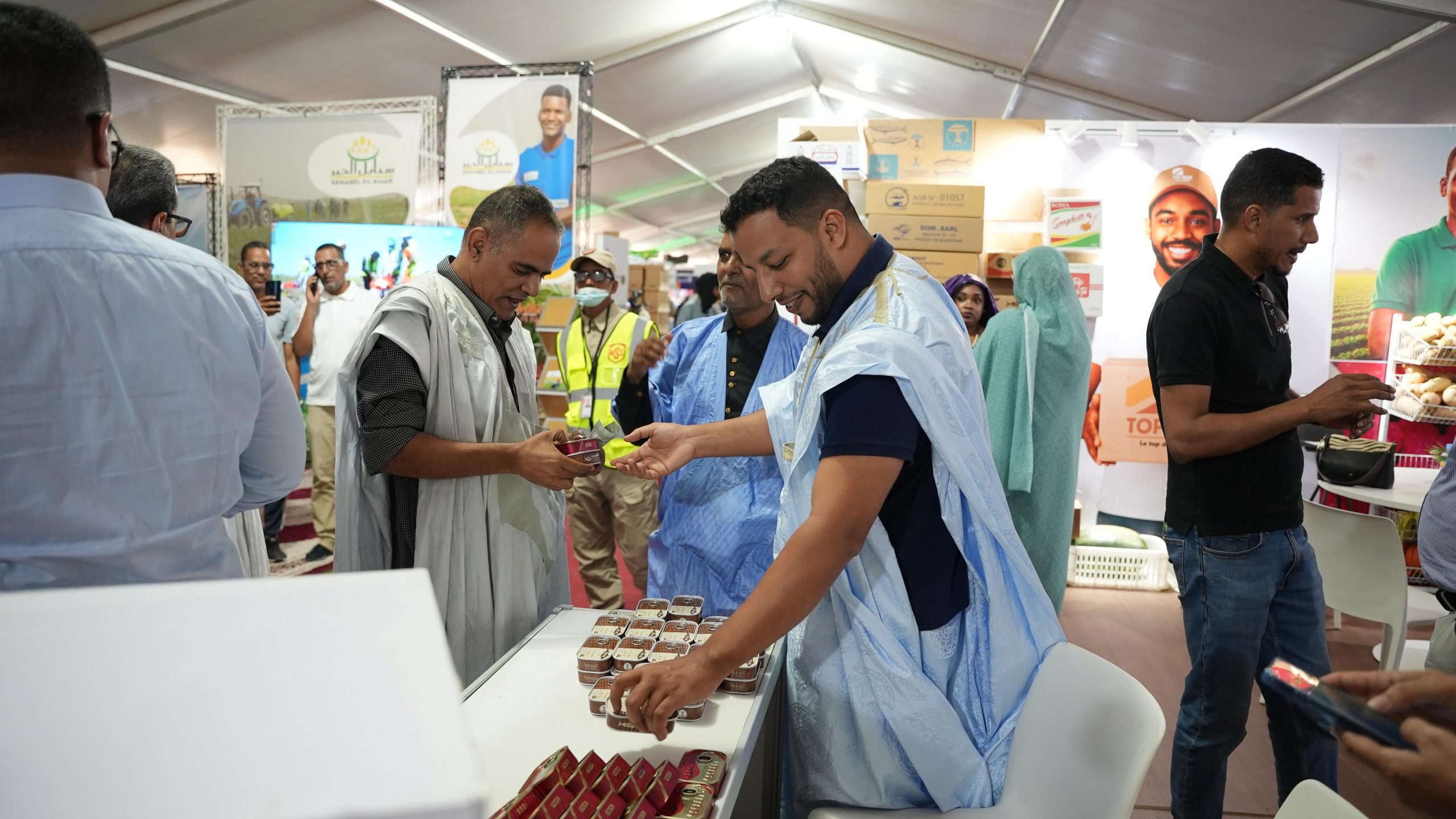 Le stand d’ACI a été visité par le Président de la République, S.E. Mohamed Ould Cheikh El-Ghazouani, qui a pris le temps de découvrir les produits et les projets du groupe. Lors de cette visite, le PDG d’ACI, M. Moulay Idris Abbas, a présenté en détail les activités du groupe, en mettant l’accent sur la diversité des produits, notamment dans l’agriculture et l’industrie. Le président a ainsi pu découvrir l’expérience novatrice de l’agriculture du raisin, ainsi que les échantillons de sardines, qui sont des produits inédits en Mauritanie. Le stand a également mis en avant l’industrie du packaging, qui propose des solutions modernes et durables adaptées aux besoins du marché.